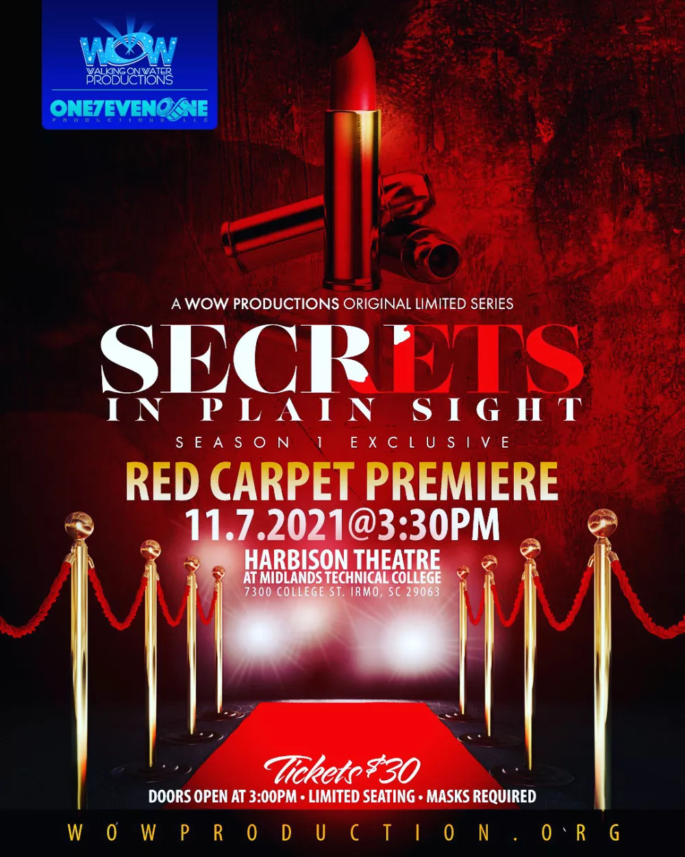 Join WOW Productions as they debut Season 1 of their first limited series, Secrets in Plain Sight! See the entire season before anyone else at the Exclusive Red-Carpet Premiere and experience WOW’s evolution from stage to screen!